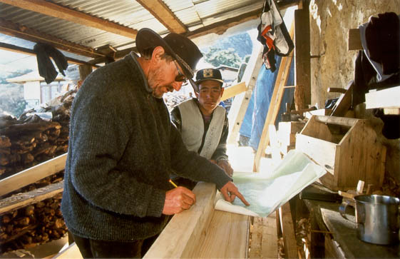 After the inauguration of the newly built monastery in 1994, at the request of the Abbot and the of the Nepalese government Schmitz undertook a survey to assess the needs of Tengboche in the face of ever increasing pressure from huge numbers of tourists. Problems were discussed with the abbot, monks, local people, lodge keepers, the police, Sagarmatha National Park personnel, trekking agencies, tourists and porters. The Tengboche Development Master Plan has been the basis for subsequent fund raising and work undertaken in the area by Michael Schmitz and Helen Cawley.